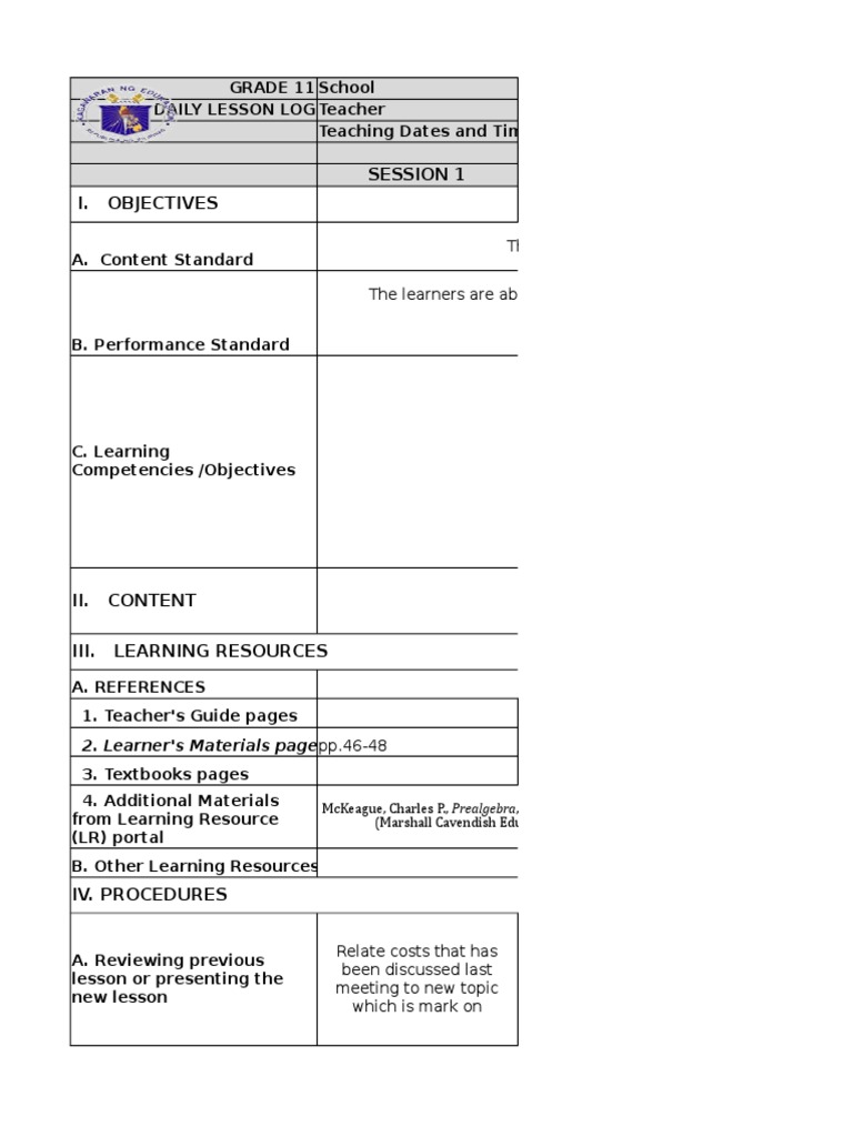 Lesson Plan Senior High School Grade 11 Deped Abm Track High School Lesson Plans High School Lessons School Grades